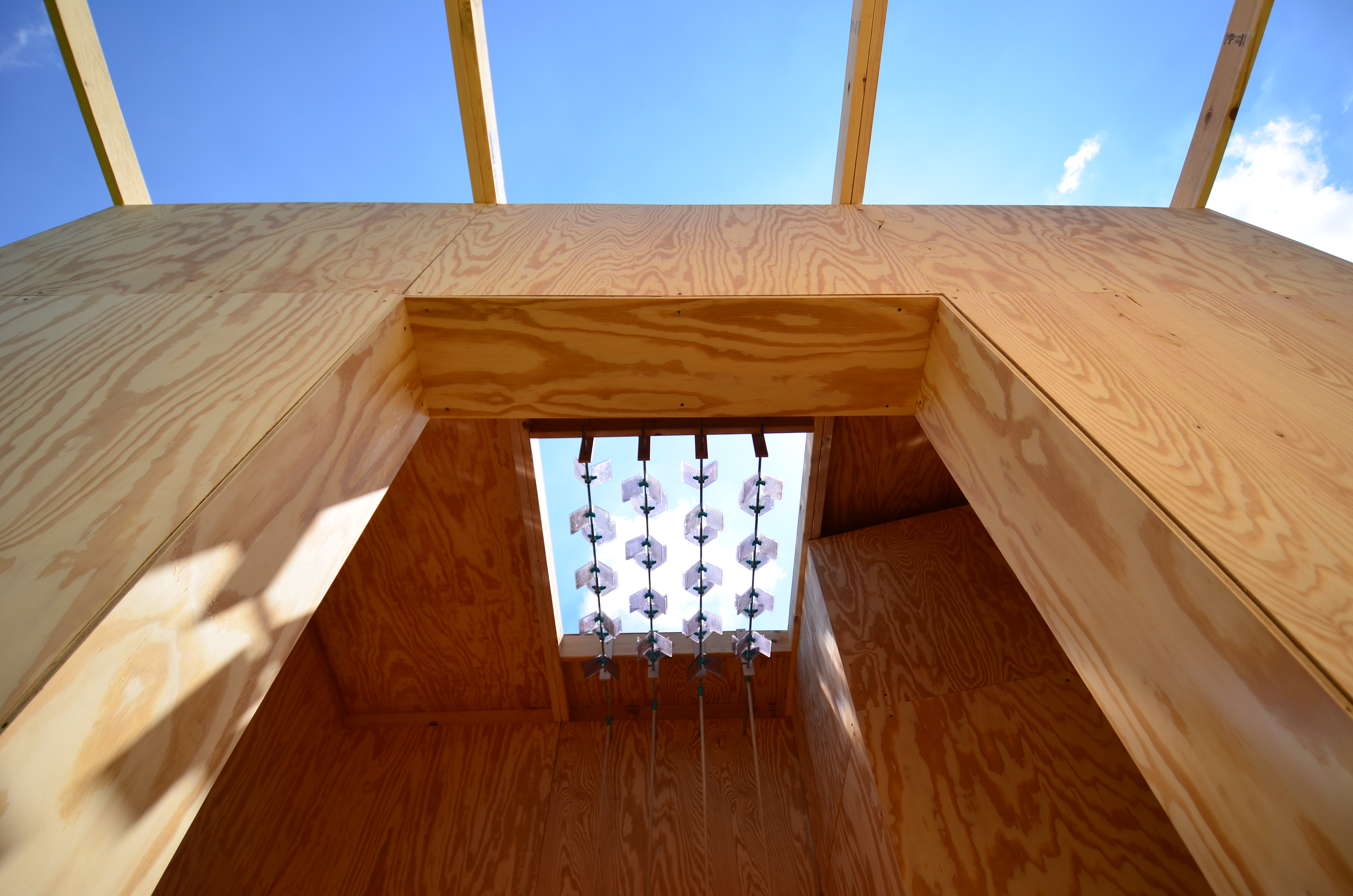 3. The prism tiles were slide into two types of 3D printed joints. These tiles were held on the threaded rod with 1/2” lock nuts which kept the tiles from moving.