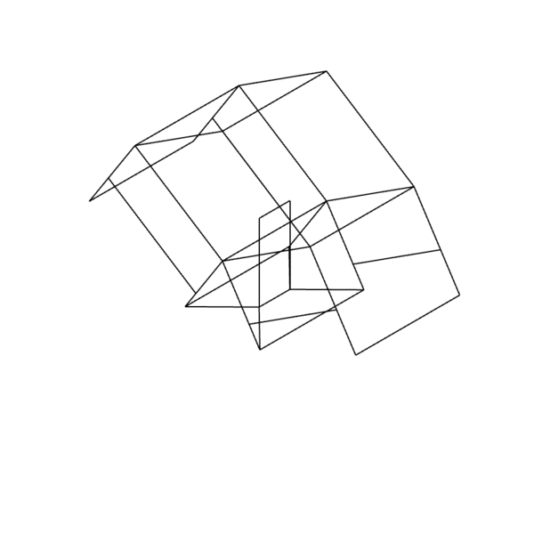 The first exploration used two vertically extruded parallelograms attached at one face. This central surface remained rigid while the other three edges of each parallelogram actuated forward and backward.