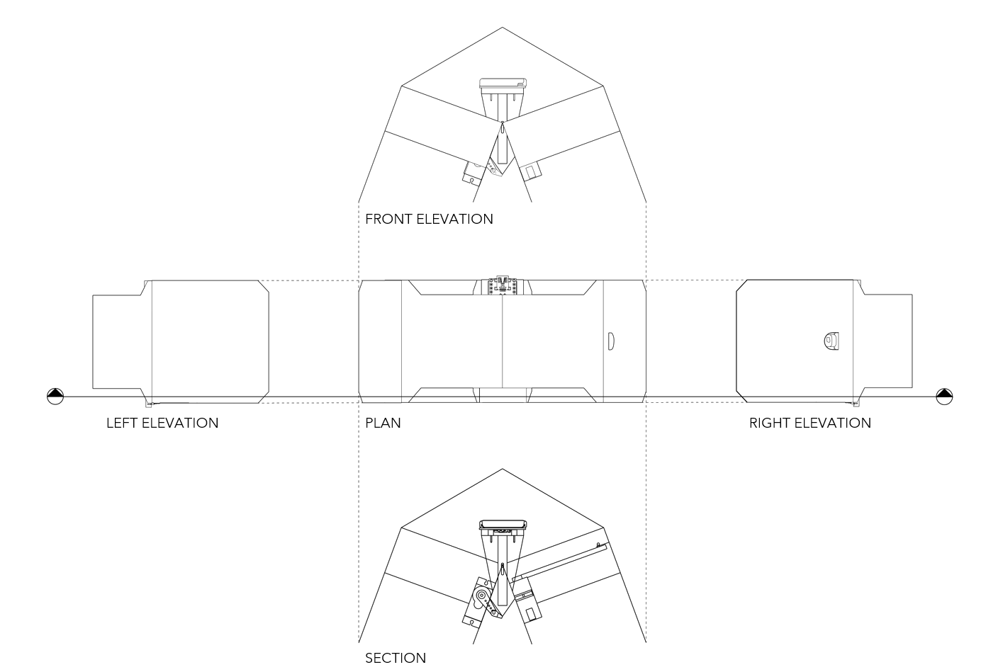 These orthographic drawings highlight the simplicity of the robot’s design.