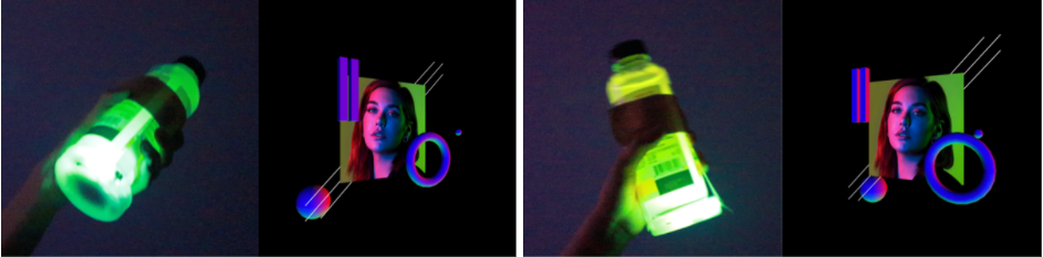 The tangible product of LiveHouse is inspired by the signature activities during a music event: drinking and dancing. Whether it is a live house, concerts, bars, or carnivals, people not only enjoy the music but the surrounding atmosphere. Holding or drinking a bottle of beverage facilitates the sense of enjoyment while swinging the body with music also naturally happens in a music event. To associate users with a real music event, the tangible product is designed to be linked to these signature scenarios.