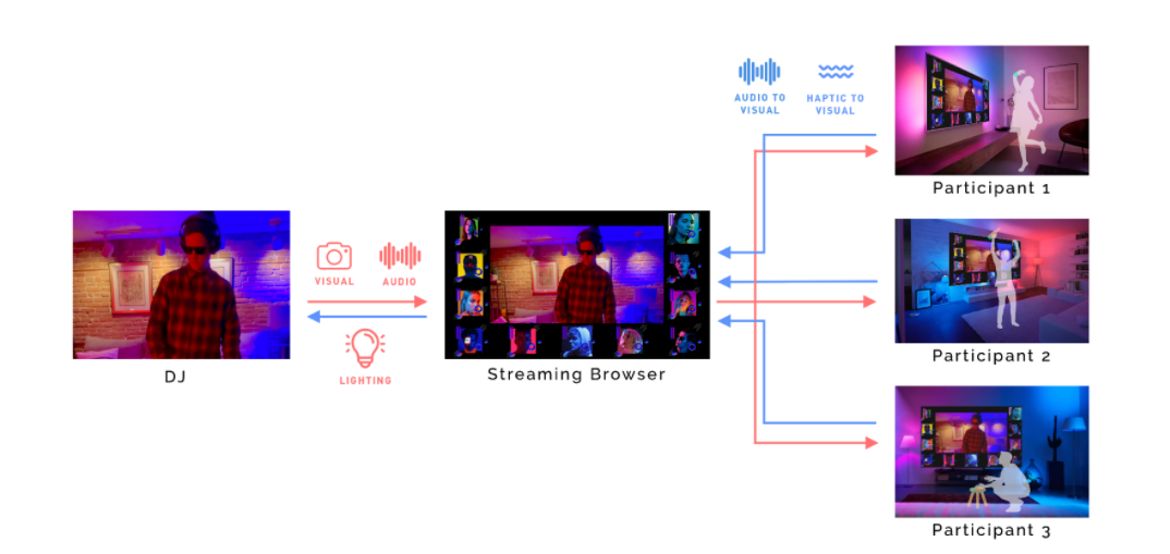 The team developed an interactive telepresence experience that allows users to experience a live concert with others from the safety of their home or dwelling.