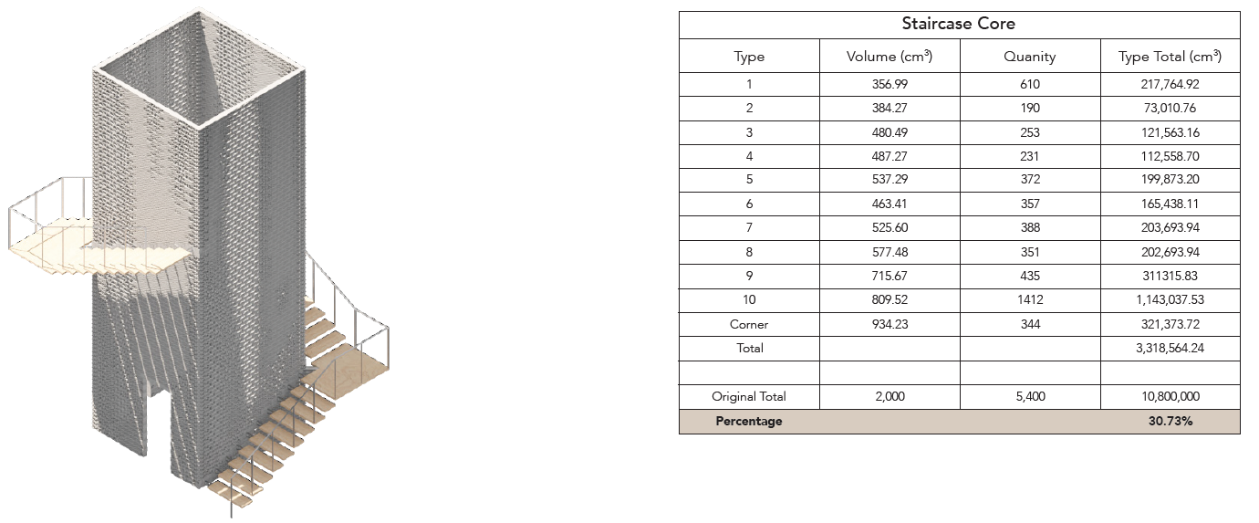 Two case studies were investigated using very different structures to showcase NuBlock’s versatility. These two studies were a staircase core and a shell structure.