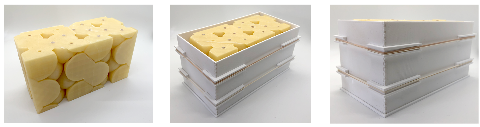In this image the two final fabricated blocks were stacked to show the possible variation in porosity.