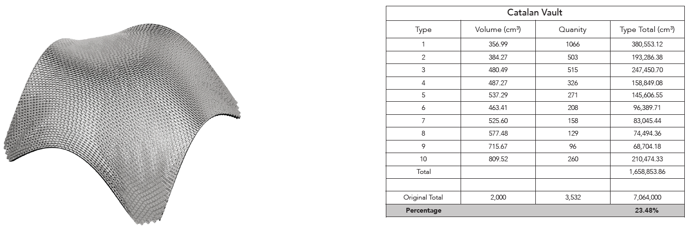 The structure was only 30.73% the volume of this structure with traditional blocks.
